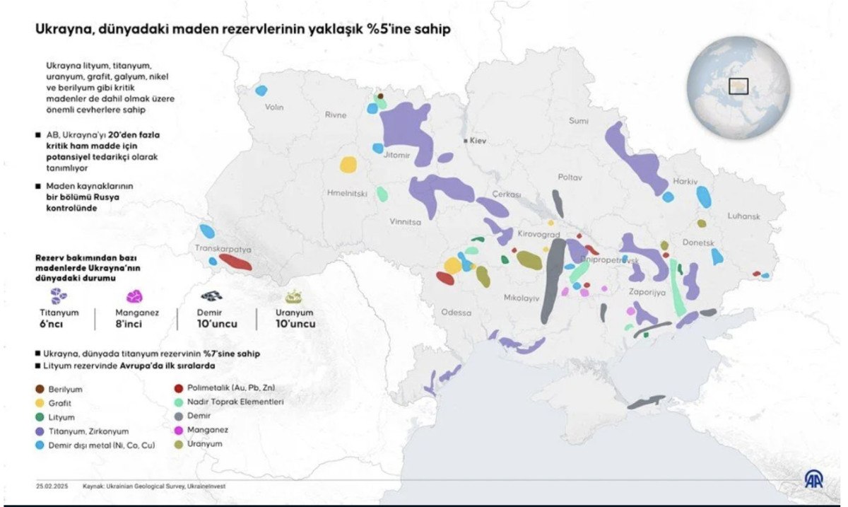 ABD'nin Ukrayna'daki maden kaynaklarıyla ilgilenmesi, Çin'e karşı stratejik bir hamle olarak değerlendirilmektedir. Rusya ve Çin'in de Ukrayna'daki rekabeti giderek artmaktadır.
