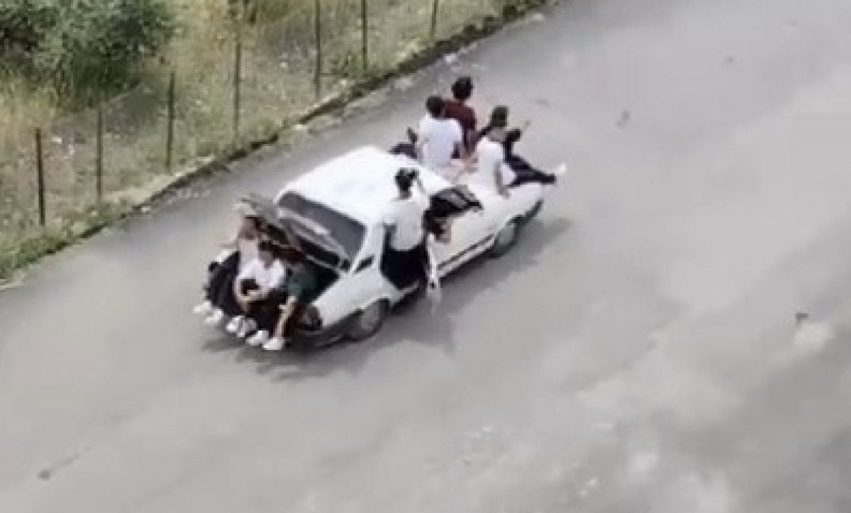 Adana'nın Merkez Yüreğir ilçesi Özgür Mahallesi'nin ara sokaklarında çekilen görüntülerde, bir otomobilin bagajında ve kaputunda çok sayıda çocuğun yolculuk yapması dikkat çekti.
